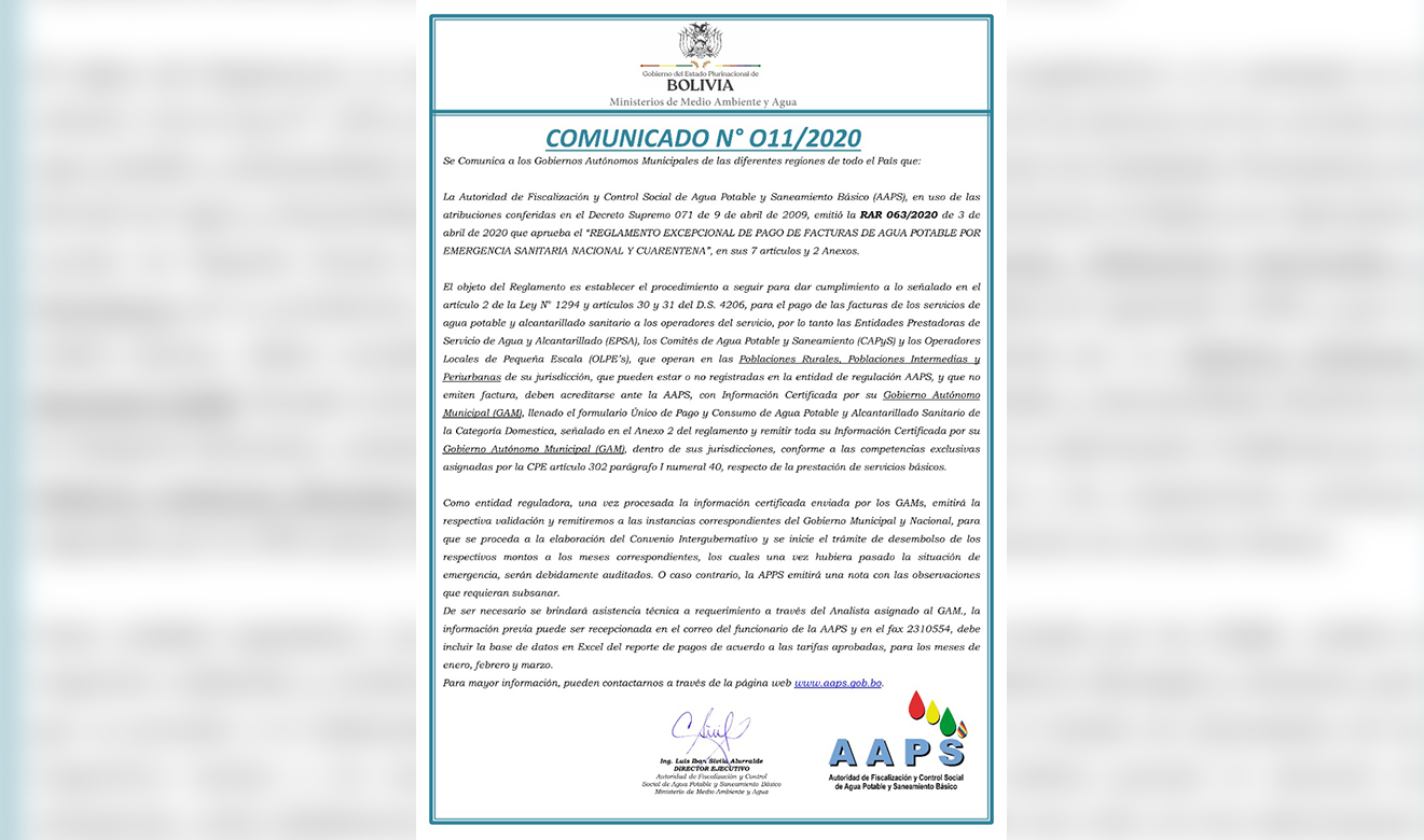 Autoridad de Fiscalización y Control Social de Agua Potable y Saneamiento (AAPS)